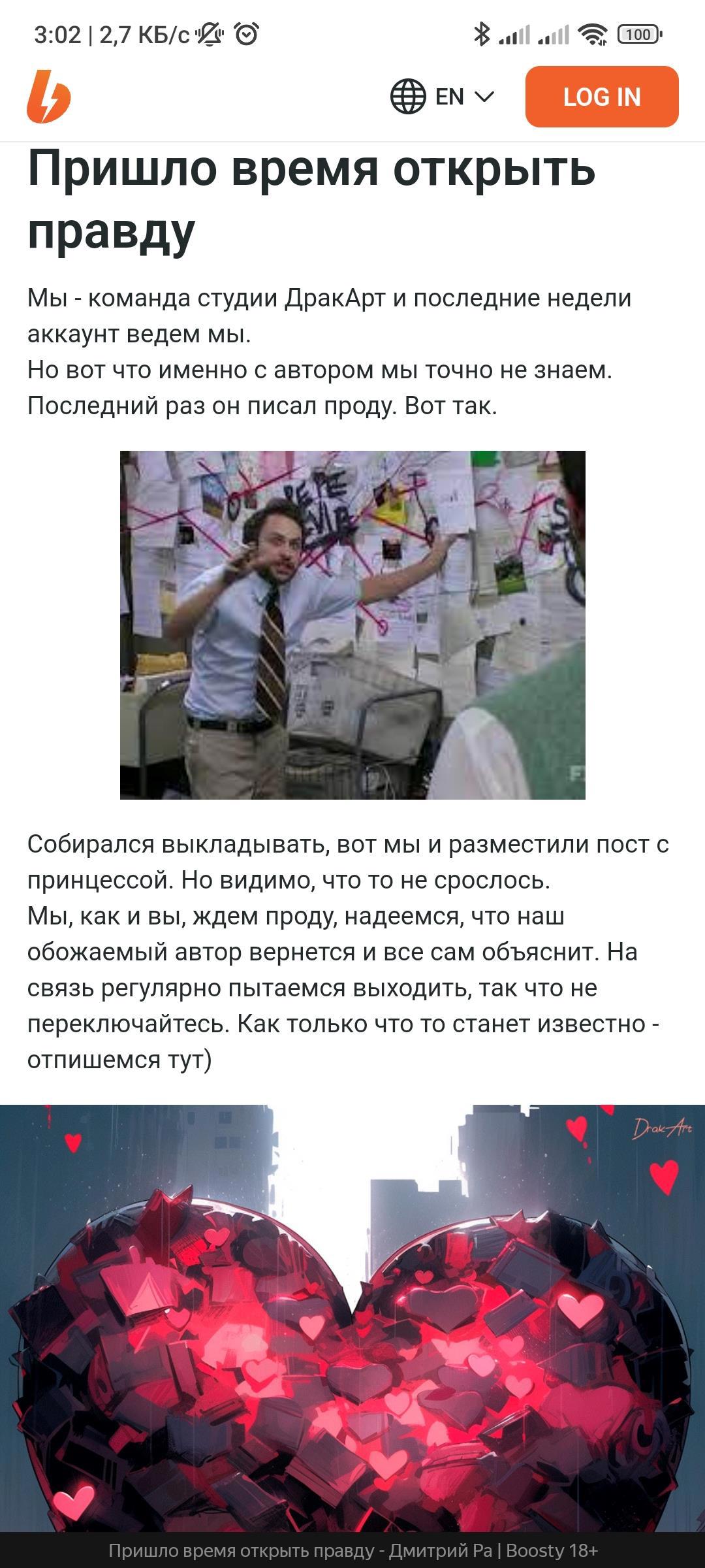 На его бусте опубликовала пост команда ДракАрт. Пост говорит о том что они сами не знают что с автором. Был автор, писал проду и готовился выложить, и внезапно пропал. Пытаются связаться, но пока выходит как у орканутого первой книги во власть. Так что ждём новостей. Пост был от 29.10
