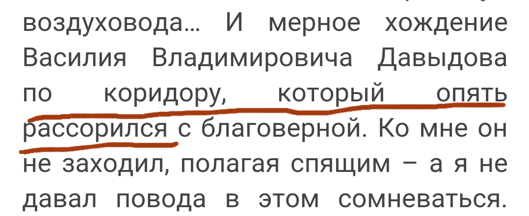 В главе "Пока все дома" один момент, как мне кажется, выбивается из общего стиля...