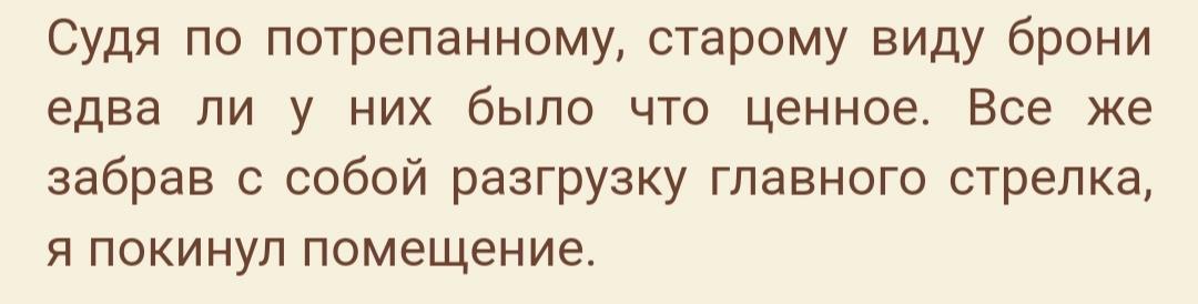 3 вроде он там собирал трофеи с карликов, последним с кинетическим уроном от жезлов, неуверен что там что-то осталось от расходников или банки-склянки. Может ветеран когда сказал "Я там твои вещи собрал", намекнул про сам хабар и лут. Кто знает) опять таки спешка, перенаправить удар бомбы и так далее, сами ранения и возврат в живых с того мира, не до лута. Наоборот читалось бы глупо, Когтя чуть ли не убили, он зеньки открыл и "Бля лут!нужно больше золота!" Пфф, что за дичь?)