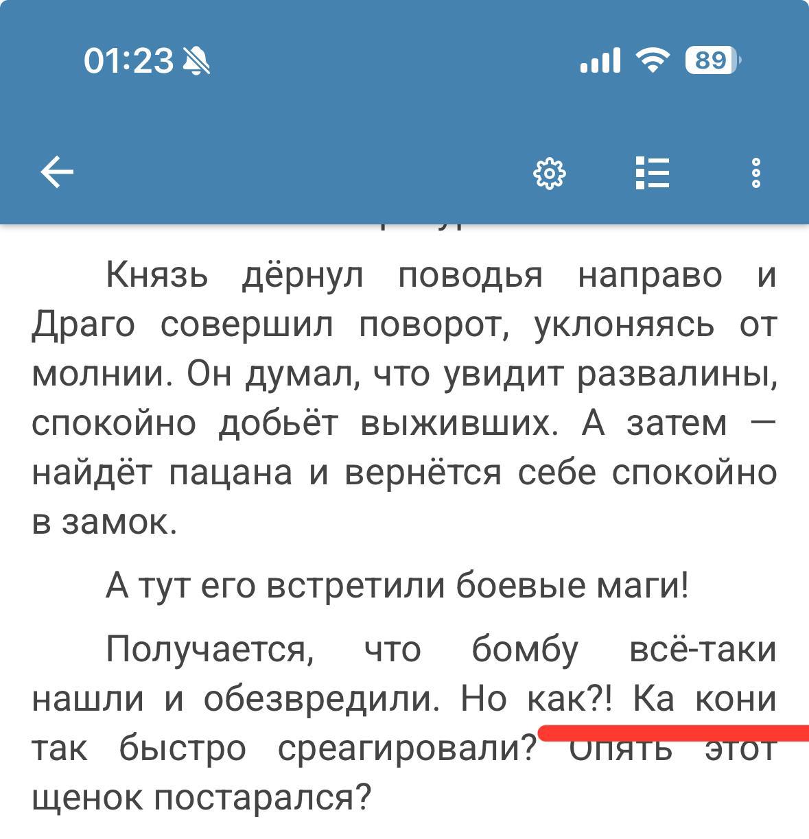 хорошо) обычно я редко пишу такое. Потому что сразу скринить - это отрываться от процесса прочтения) а прерываться не хочется ) книга же от этого не портится) но иногда есть время на доброе дело) комментарий можете удалить, как подправите, а то мои скрины тут на весь экран