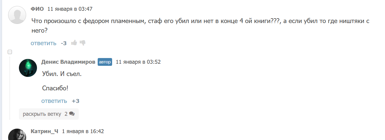 Я всегда рассказываю в комментариях, что будет дальше. Видя, что Вилена оказывается осталась "без информации" отчего-то вспомнился вопрос читателя после завершения 5-й книги (скрин).