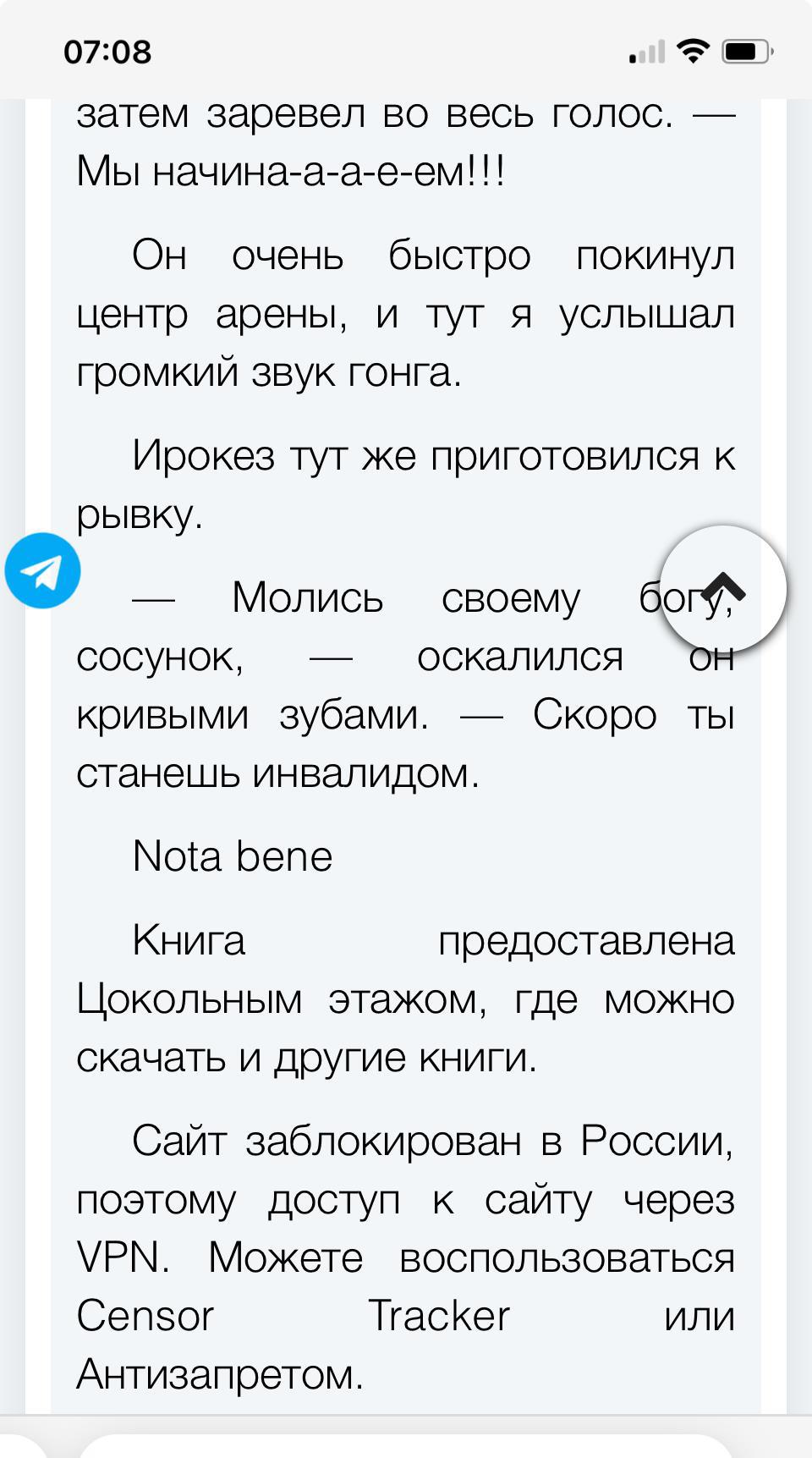 Добрый день. 6 книга закончилась началом боя на арене, а 7 книга начинается уже с другим сюжетом. Где описание боя лучника с ирокезом?