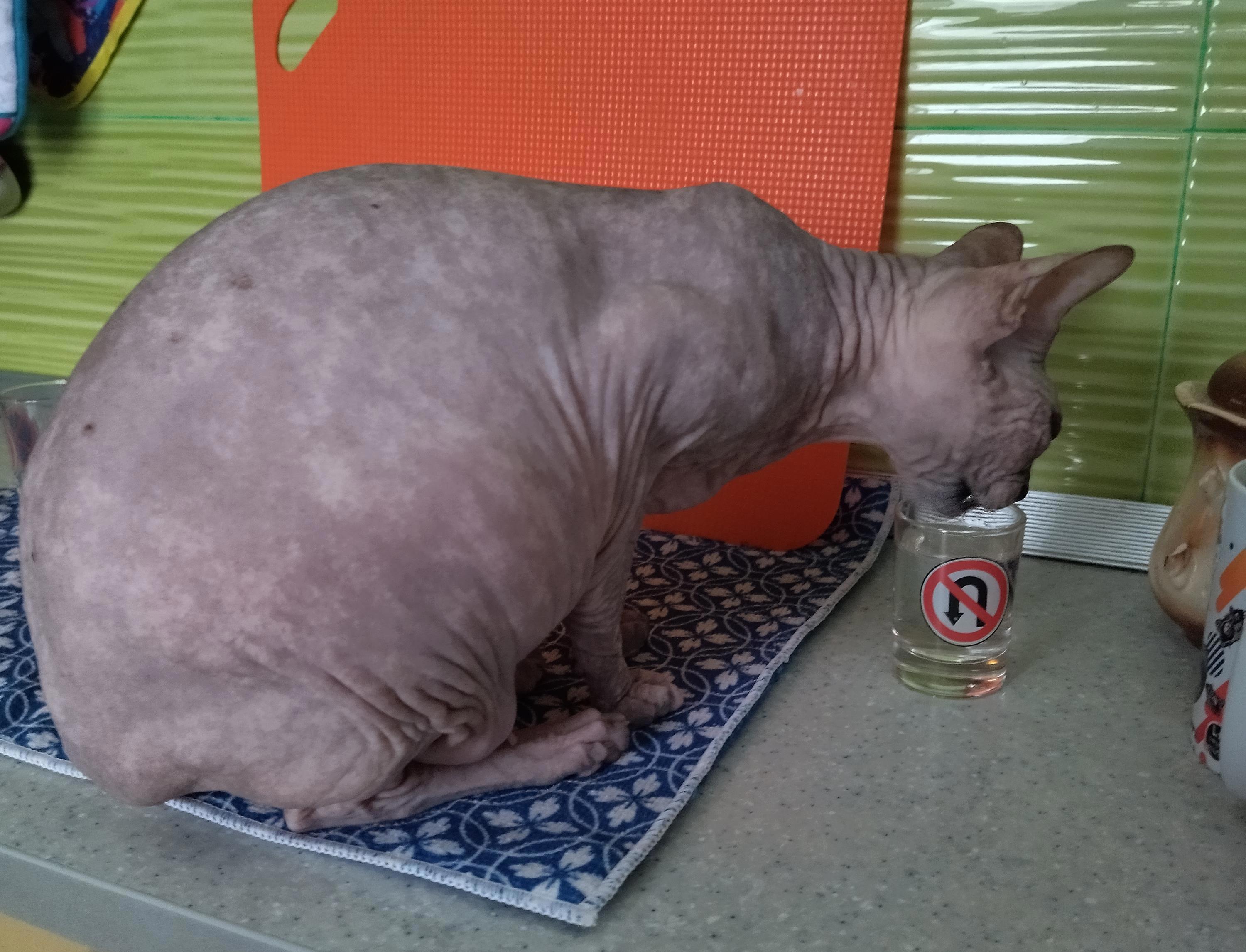 Вообще, она из аквариума пьёт и из пол литровой пивной кружки (специально для этой ждунишки ставлю). Кружка была в мойке и я решила не отходить от её пристрастий к спец-посуде)