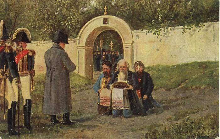 Старообрядцы встречают Наполеона освободителя хлебом солью. Так же потом Гитлера встречали.