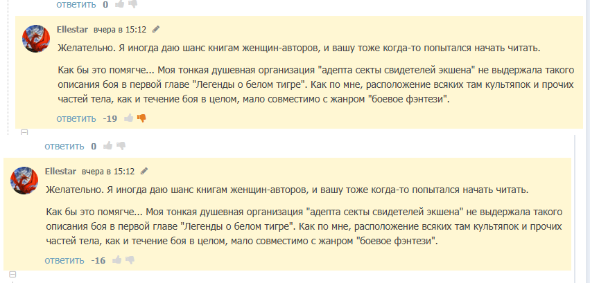 Послушайте, я взрослый человек, я нормально отношусь к тому, что моя книга может кому-то не понравиться, даже книги признанных авторов и мэтров не встречают 100% читательское одобрение, но мне кажется, вы не понимаете, что до вас пытаются донести.