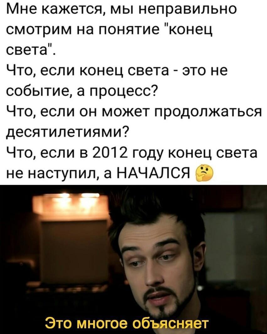 А я имела ввиду духовно не доросло, как говорится в моральном плане, а в техническом, я с Вами согласна, апокалипсис глобальный или региональный(чтобы народонаселение уменьшить), не за горами...