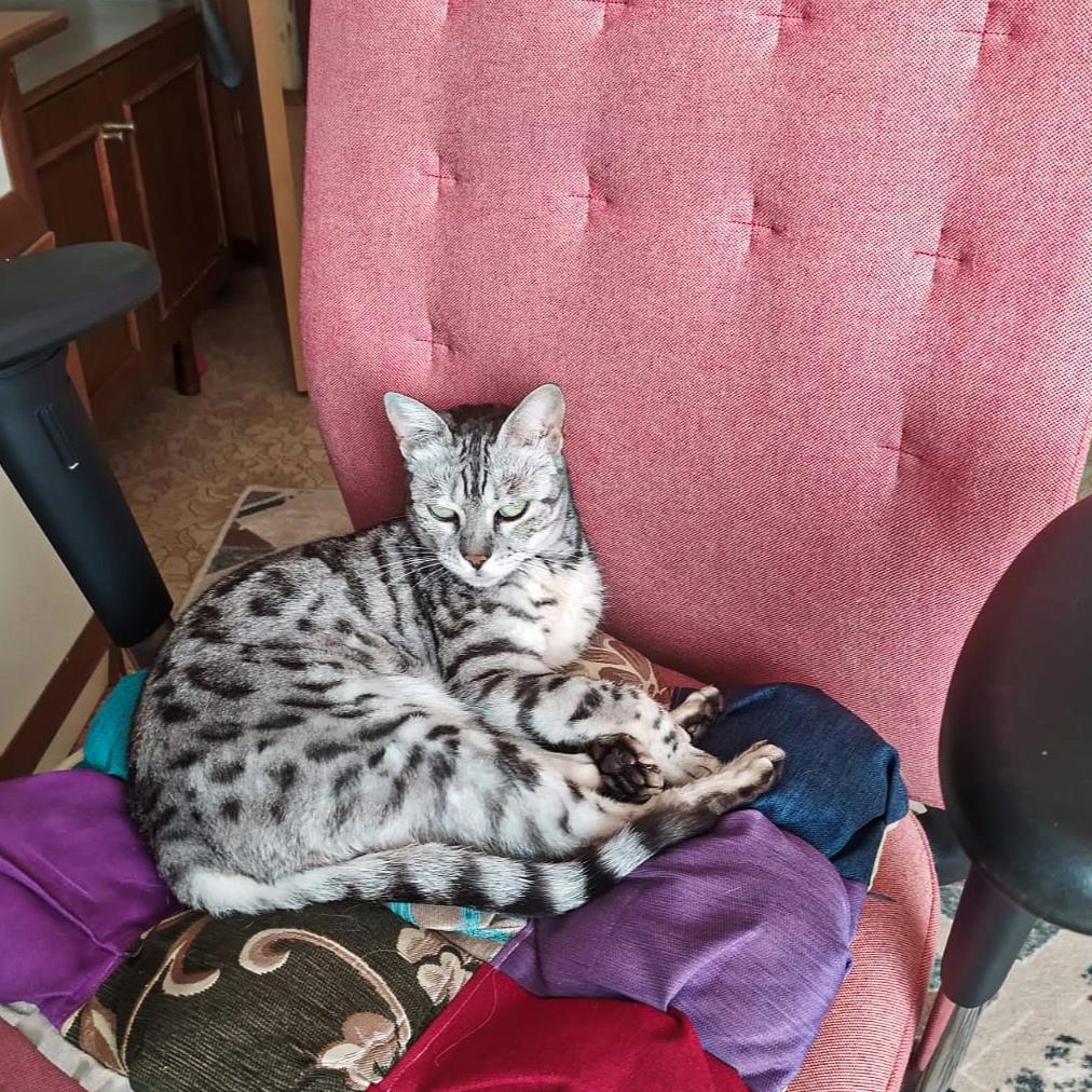 Аська — не совсем кошка, у неё 2 вида диких генов. По маме сервал (4-е поколение), по папе азиатский леопардовый кот (2-е поколение). Аська — саванна f5.