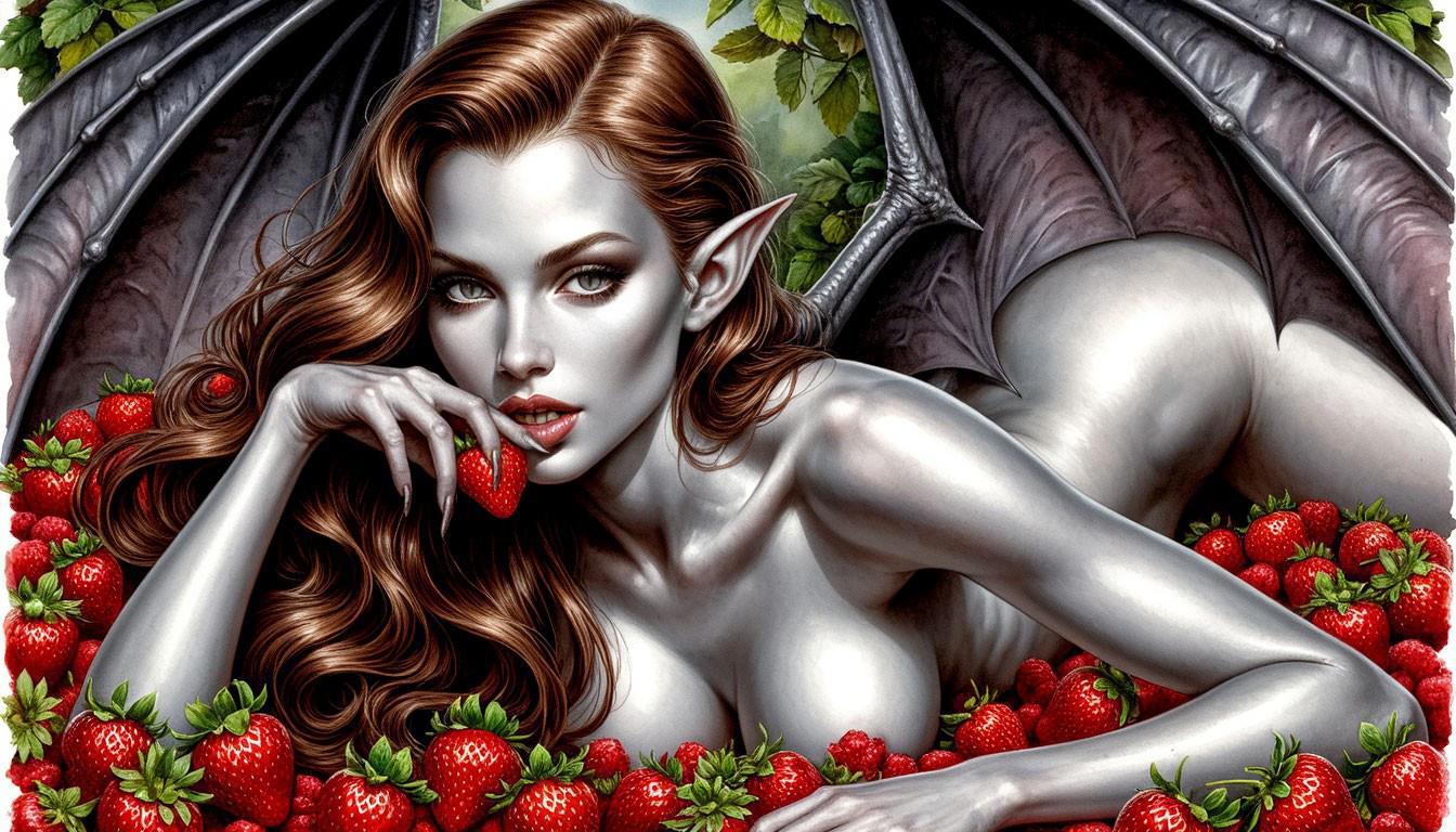 Если есть идеи, что ещё такого нагенерить с другими персонажами, попробую сделать как будет время) Не хочется просто тупо голышом, надо в какой-то обстановке или атмосфере интересной. С клубникой вот удачно как раз в главе было