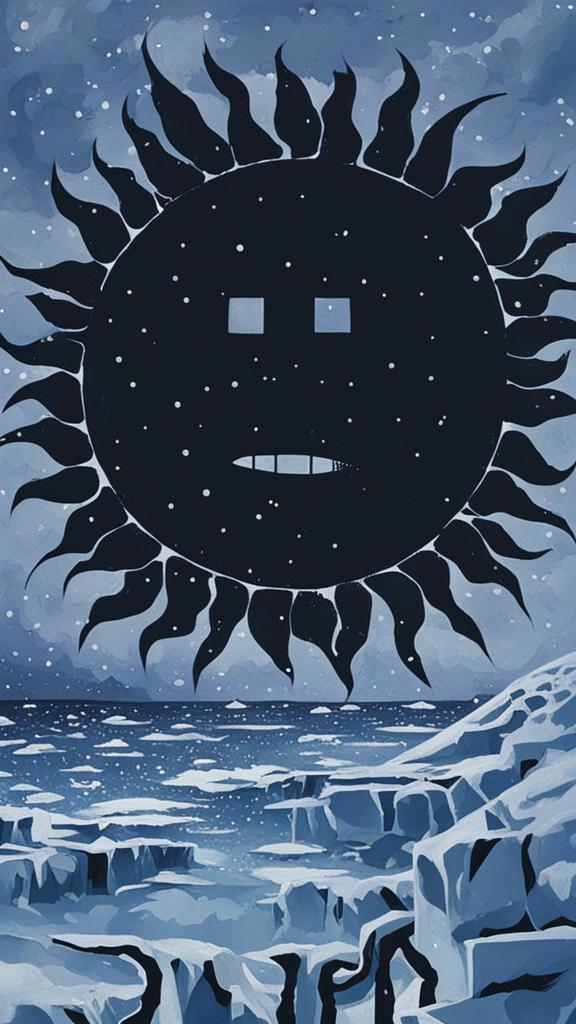 Из интересного и заметного мне могу предположить только отсылку к черному квадрату и смерти солнца/луны (по некоторым трактовкам и бога). Наверняка тут есть много чего еще, но видимо я не в курсе других отсылок