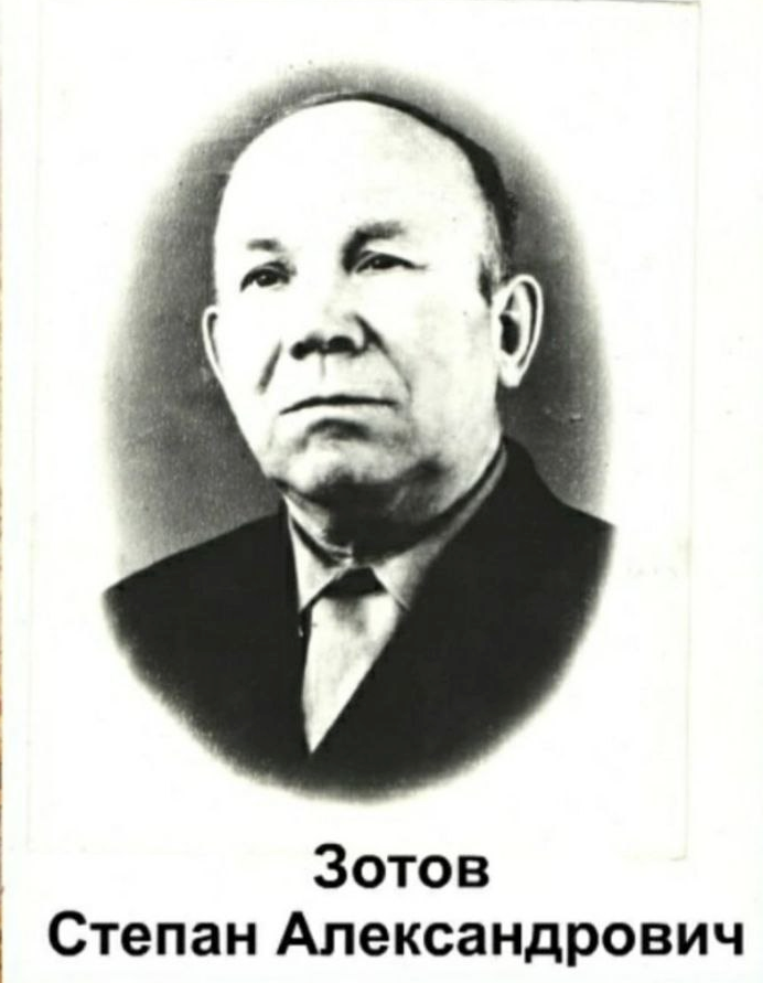 Записи военкомата. Зотов Степан Александрович 26.12.1911г- 14.09.1995г Уроженец села Трофимово Лысковского района, Горьковской области. Инвалид ВОВ. Был призван на фронт 10 августа 1941 г. В 102-й стрелковый полк по защите Москвы. 24 августа 1941г. Был ранен в руку. Ранение осколочное, рикошетное. Находился в эвакогоспитале номер 1239 с 11 сентября по 20 ноября, демобилизован. Награждён орденом Отечественной войны 1-й степени. (Воспоминания дочери Зотовой Галины Степановны) Когда отец ушёл в 1941 году на фронт, ему было 30 лет. Дома с женой 28-ми лет остались две дочки 8- ми и 4-х лет. От призывавших вместе с отцом в 1941 г. под Москвой погибли многие земляки, вернулись лишь безрукие и безногие - инвалиды. Обучать воинов не было времени - враг был под Москвой. Многие и ружья-то в руках не держали. У отца ещё до войны было ружьё, он был охотник. Опыт был. Ранение получил рикошетное, осколочное. Просил хирурга в полевом госпитале не отнимать руку, т.к. он был сельским жителем. Оставили то, что осталось. Вскоре был отправлен с другими ранеными в в тыл в Новосибирск. Так и жил инвалидом; левая рука была лишь на прихвате. Всегда, даже летом, ходил в рубашке с длинными рукавами. Когда вернулся - трудился всю войну и ещё более 25 лет в дорожном отделе Лысковского раисполкома: мастером, прорабом и начальником. Учился в Горьком, когда направляли. Зимой наращивали лёд через Волгу для переправы в заволжье (Макарьев). А летом строили мосты, дороги. Всю войну и после. Был рацинализатором и наставником молодых. Вырастили с супругой пятерых детей. Имел награды орден Отечественной войны 1-й степени и другие, а также за труд.