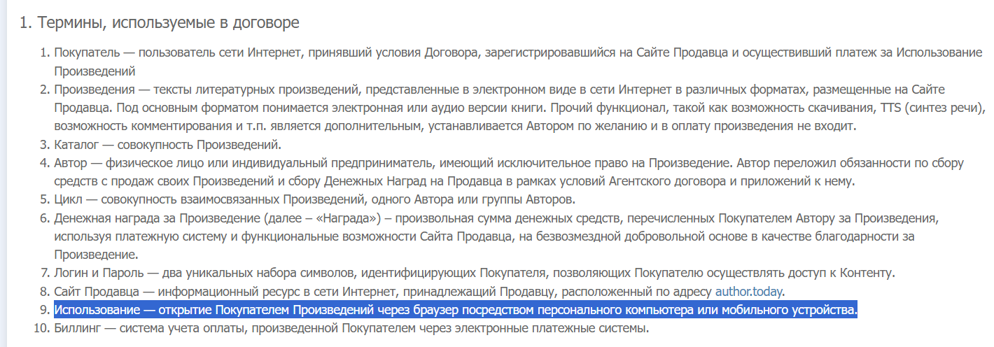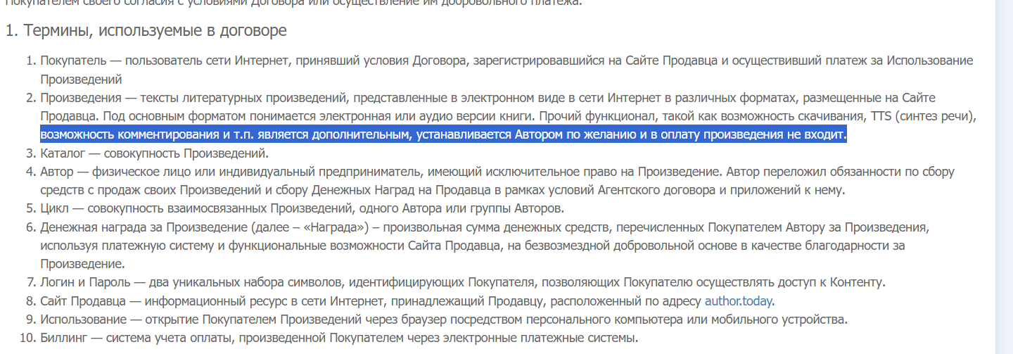 Соответственно и отзыв будет легитимно писать о "возможности читать" произведение. Потому что именно это и есть продающаяся услуга. Не "прочитанное", а "возможность читать". Например отзыв "Читать невозможно, кодировки сайта какие-то странные" - легитимен. Отзыв "Не могу читать, сервера лежат второй день" - легитимен.