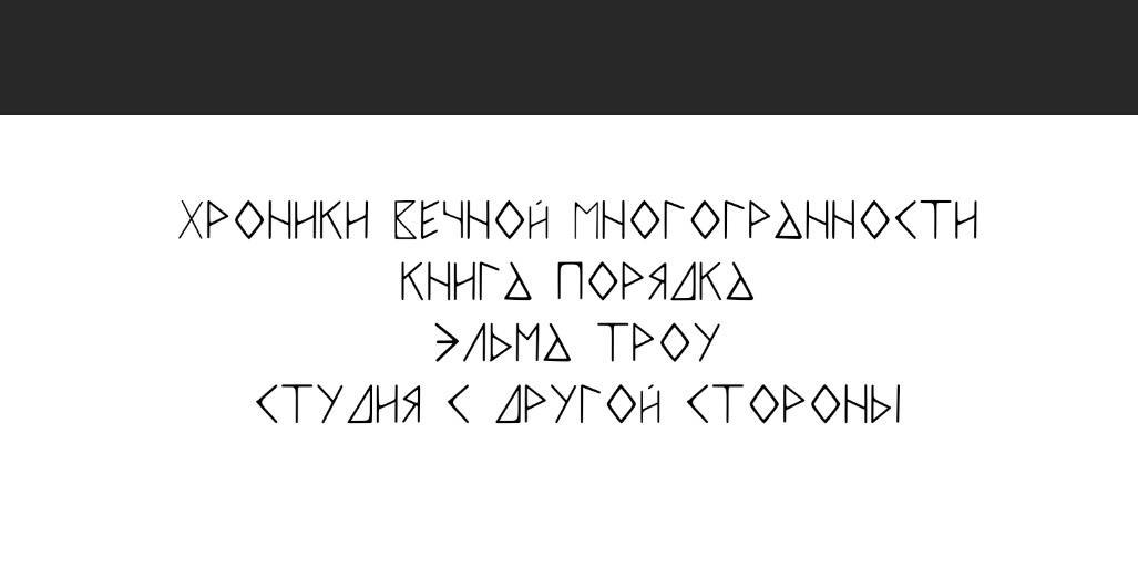 Это "Многогранный" шрифт. Я его специально для серии книг по миру Многогранности разрабатывала.