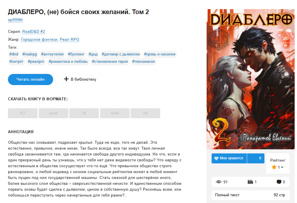 Написал комментарий к произведению ДИАБЛЕРО, (не) герой нашего времени. Том 1