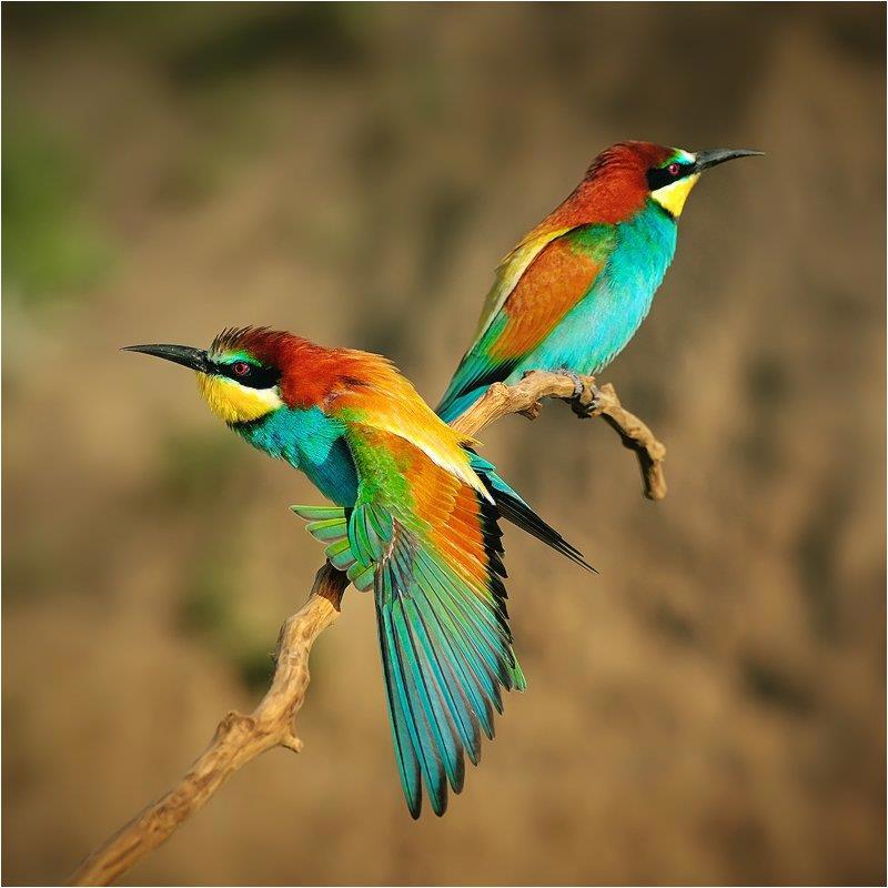Эта птичка далековато, живьём не увидишь, а вот щурку золотистую в средней полосе встретить легко. Очень красивая, но вредит пасекам весьма сильно.