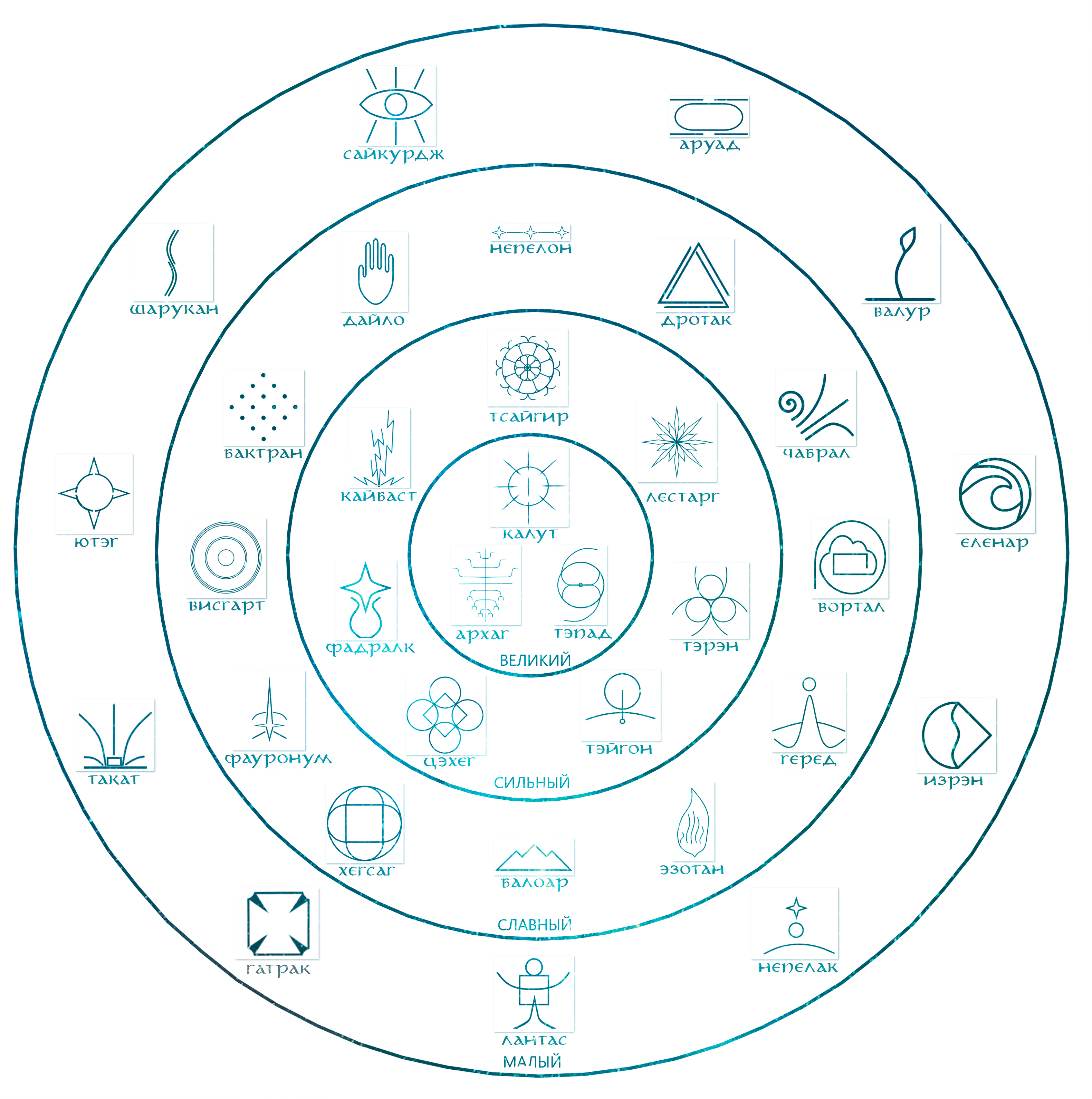 Огнекровные Эзотан, благославленные Жар-Птицей и предпочитающие заселять лишь ледяные миры, Звёздные Зодчие Непелон, что строят свои дома в космической бездне, пережившие эпидемию Древолюбы и Травоведы Валур и склочные Целители Лантас, нелюдимые, но желанные Наемники Изливающие Силу Тсайгир и Мастера Мысли Тэпад, путешествующие своим свободным сознанием по пространству и времени, Властители Водной Глади Еленар, гордые своей относительно молодой, но позаимствованной от почивших Родов культурой, и древние, пережившие истребление Тэйгон, Управители Тяжести....
