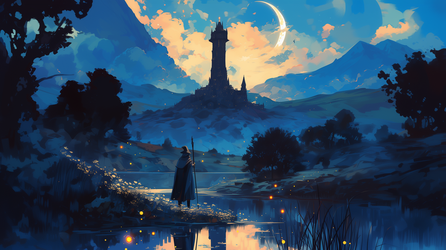 В честь окончания выдавил из миджорни арт, передающий атмосферу книги. Зараза никак не хочет рисовать башню в форме трезубца( Зато нашла место олдскульному кудеснику, при этом спрятав его неподражаемую улыбку.