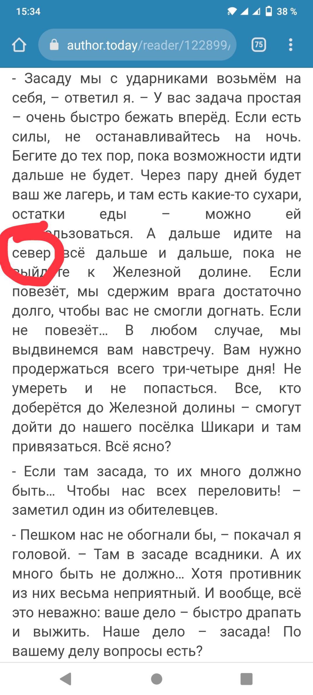 Заметил две смысловых ошибки. Тут должно быть на «юг», ведь идут со стороны Обители.