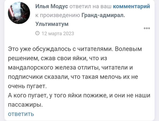 Для меня сильный маркер, что надо бросать это тупые грамматические ошибки. Есть на АТ Илья Модус с серией "Гранд-адмирал"... Ну что могу сказать, написано вроде бы и интересно, но абсолютно не вычитано. Настолько, что в какой-то момент начинает вымораживает и я пишу комментарий (что так-то не очень люблю делать, так как постоянно опасаюсь написать какую нибудь хрень за которую будет потом стыдно), в котором пишу что-то типа "поищи редактора, глазам порой больно.