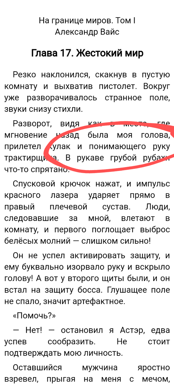 Пытаюсь начать читать уже 3 раз, но приходится бросать. Из-за того, что нет разбивки по главам. Сам сайт не сохраняет место последнего места. Читаю с мобильного короткими промежутками, и каждый раз приходится искать место где остановился. Само произведение нравится, но очень портит настроение постоянные поиски...