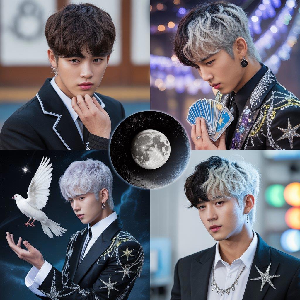 Он сам в центре а по бокам его разные проявления как фазы луны.