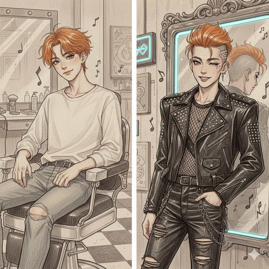 я его сделал рыжим потому что все остальные цвета заняты если думать в стиле натуральных. А он должен визуально хоть как то отличаться. Группа Blackthorn имеет такой стиль что все визуально разные, так что логично что и Сай должен выделяется, а не быть стандартным черноволосым корейцем 18+- лет.