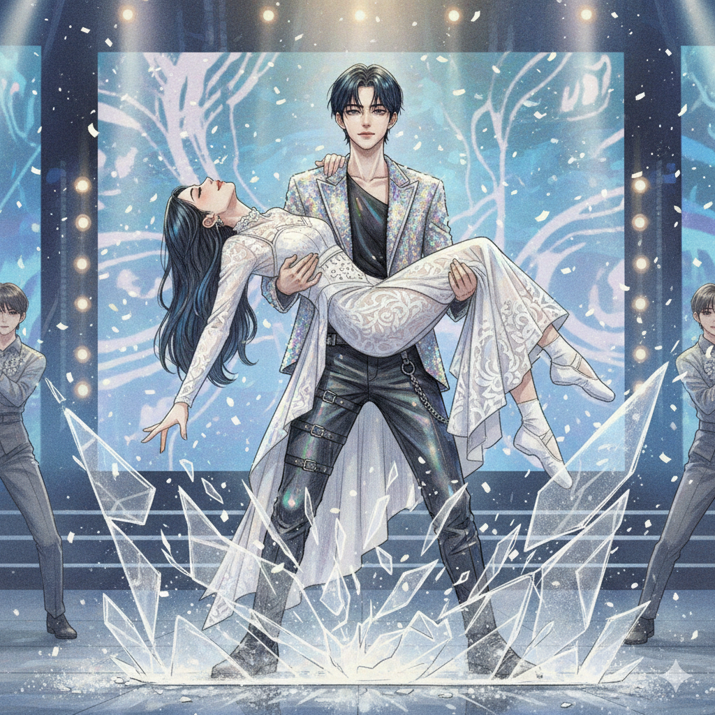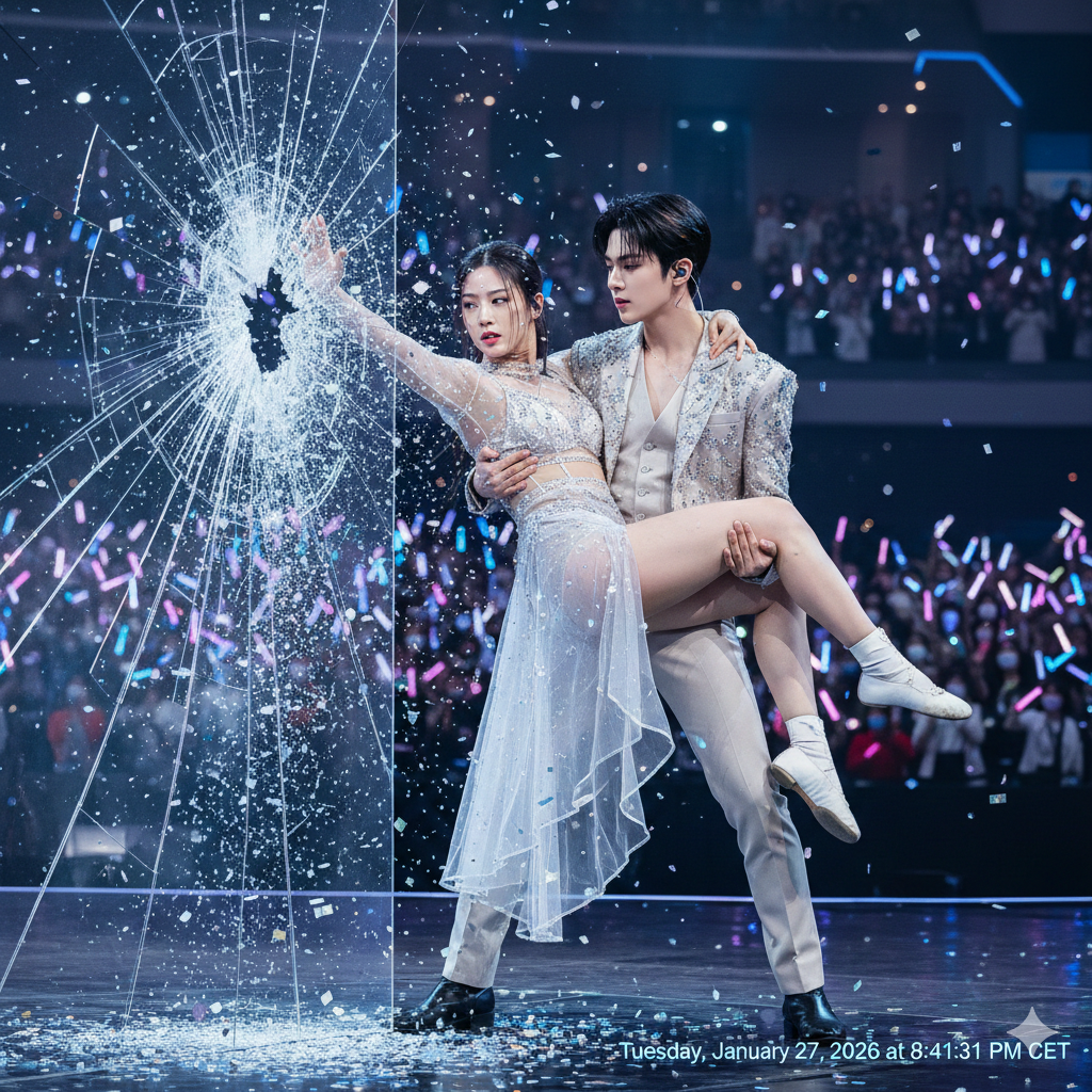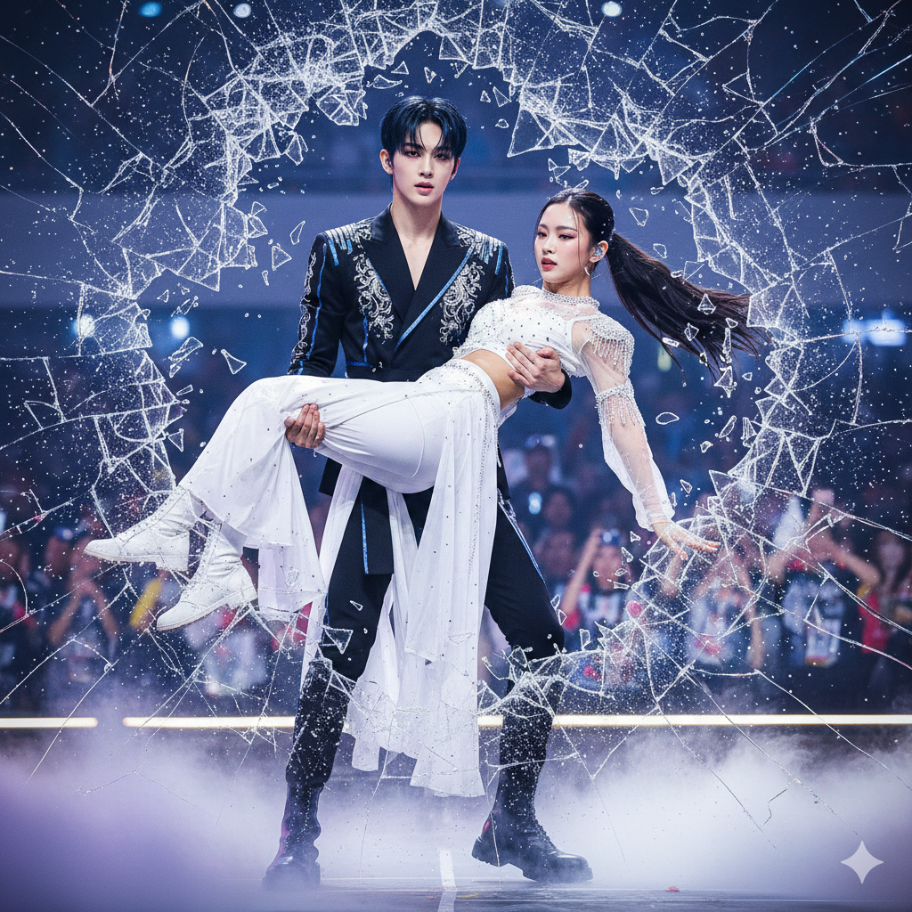 Конец музыкального проигрыша, Хару толкает полупрозрачное сахарное стекло, благодаря которому тени силуэтов выглядели более четкими. Падая, сахарная субстанция разбивается на множество осколков. Хару и парни – в обуви на толстой подошве, а вот их партнерши – в профессиональных бальных туфлях с очень тонкой подошвой. Поэтому Хару берет Джесс на руки и переносит к той части сцены, где уже нет сахарных осколков. Он видел запись этого момента – выглядит как минимум стильно.