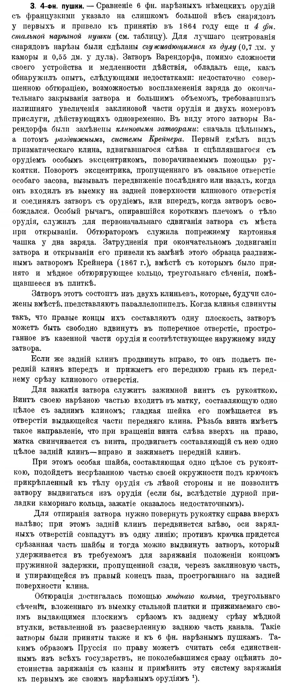 Сами по себе клиновые затворы известны, применяются, винтовки Шарпса стоящие на вооружении Аландцев. Крупп применил на своих орудиях сдвижной калиновый затвор который предотвращал прорыв пороховых газов, очень критичный у казназарядных орудий.