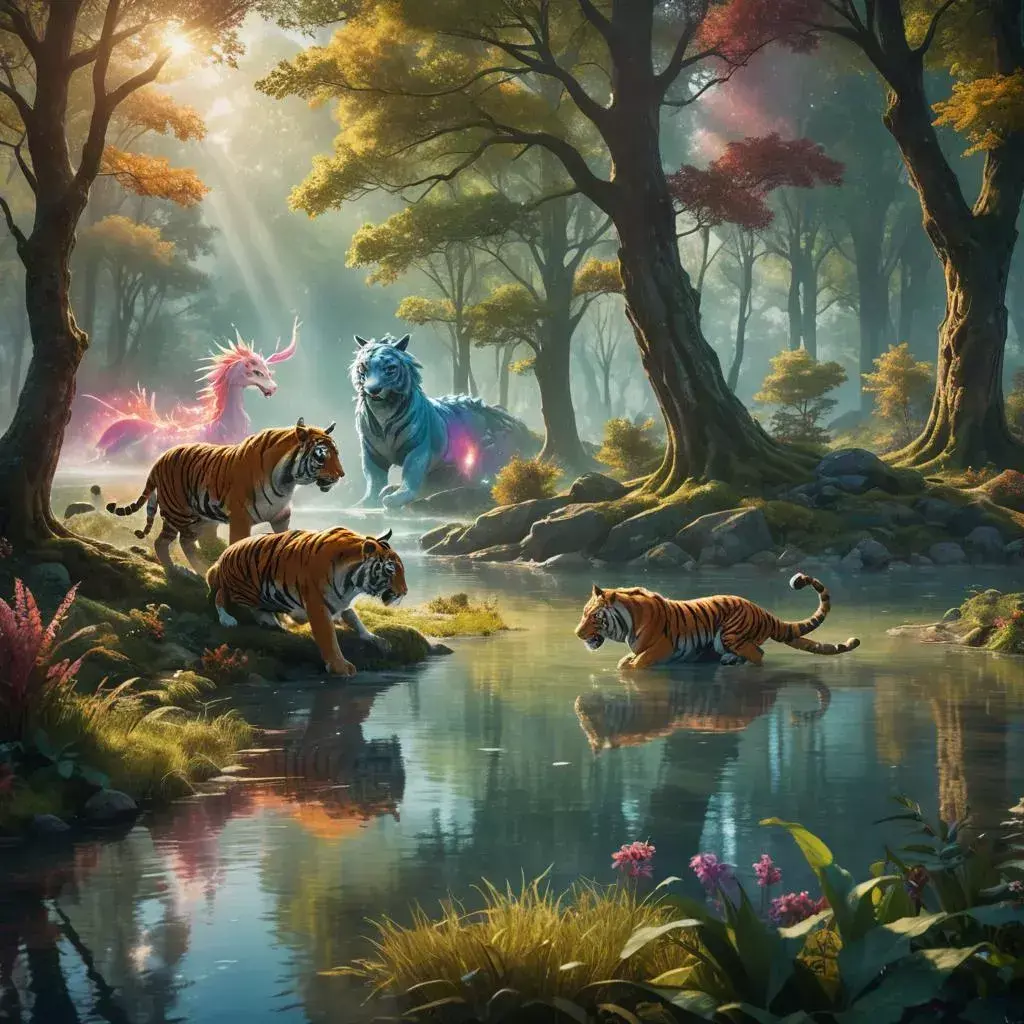ИИ никак не может понять, что мне от него надо, сделал четырёх тигров вместо одного и дракоединорога ).