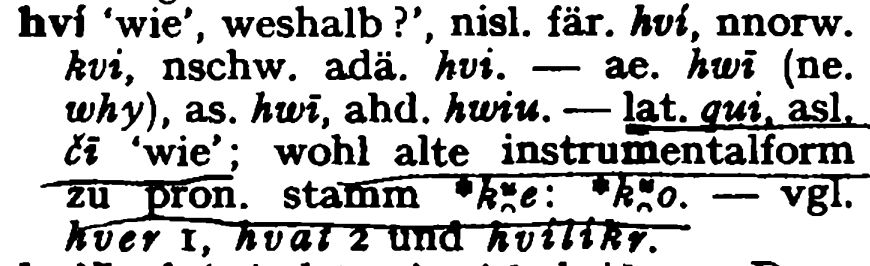 До Кимврской была ещё Троянская. Вопчем латинское qui является когнатой германских форм