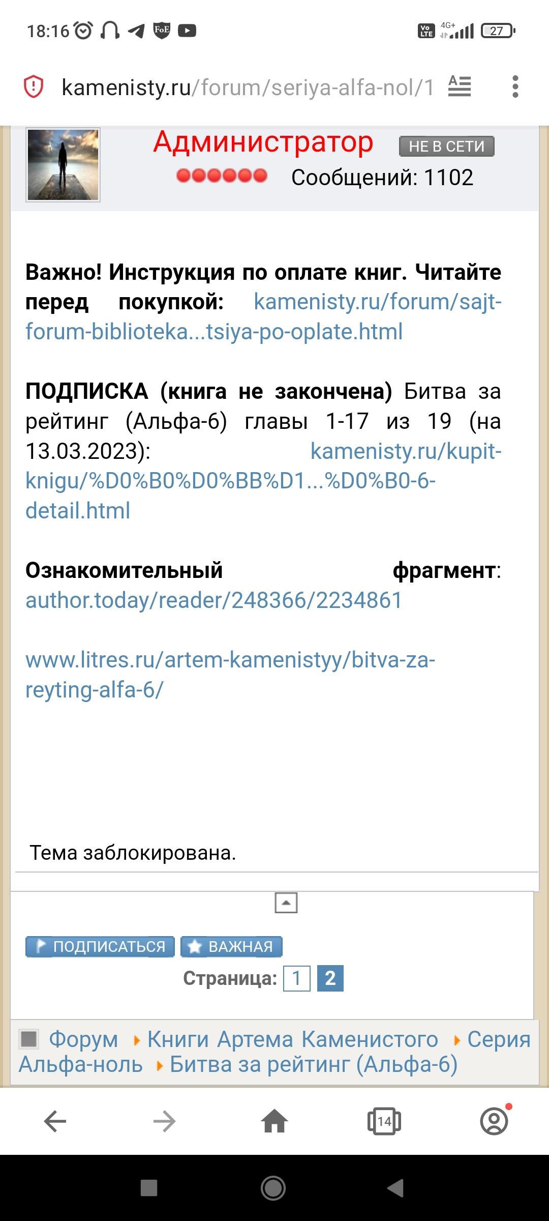 Написал(-a) комментарий к произведению Битва за рейтинг (Альфа-6)