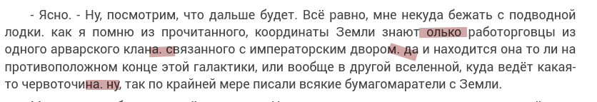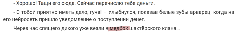 Читается очень быстро. Просто пролистываю все пространные рассуждения, всю воду с мылом. На пять страниц текста только пару абзацев чего-то осмысленного. Еще немного коробит применения феминитивов в отношении главного героя: "взяла, нашла, и пр." Такое ощущение, что перед выкладкой вычитка не проводилась вообще.