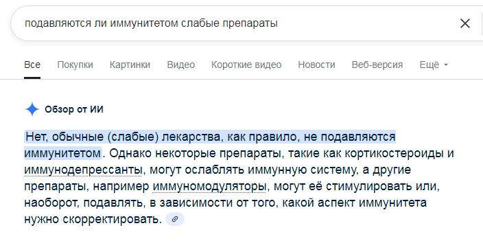На вопрос о том, подавляет ли иммунитет слабые препараты, я точного ответа так и не нашёл, но гугл говорит вот что