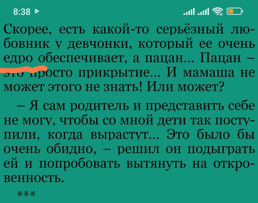 На предложение некоторых читателей "ликвидировать" Быстрову, выказываю своё мнение. В каждом произведении должно быть ЗЛО. Как Оксана Якубова со своими матерью и сестрой, так и Регина. Авторы пишут о ней как о раздражителе. И правильно делают - смотрите какое количество комментариев написано. Но и надолго сохранять Регину не будут, т.к. книга не о ней одной.