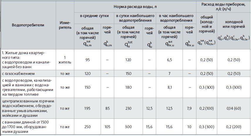 То есть 150 л в сутки - это водопотребление всех видов хозяйств, которые обеспечивают проживание человека, а не расход по счетчику в квартире. По этому расходу считаются диаметры водопроводов