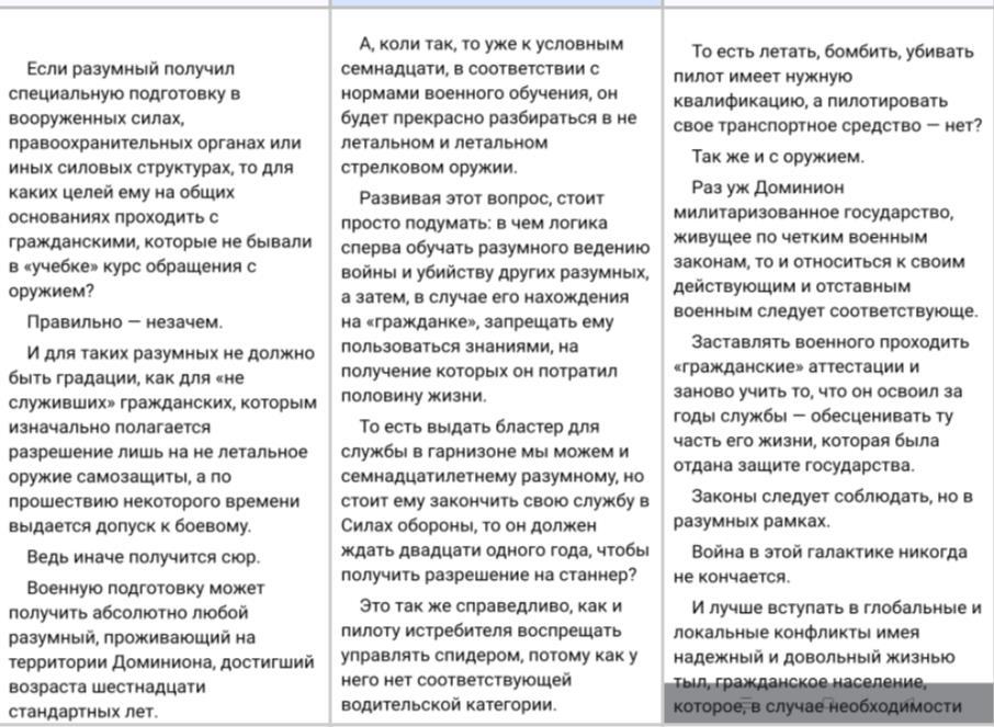 Мнение героев всегда пишется автором. Так и тут Илья Модус постоянно вкидывает от лица своих персонажей разные идеи. Разумеется его дело как это реализовывать: даже если он с этим перебарщивает, лучше так, чем безвольные куклы, не имеющие своего мировоззрения. Однако эта тема меня тронула. Оружие. В целом, направление я поддерживаю, однако аргументы автор привёл максимально глупые.