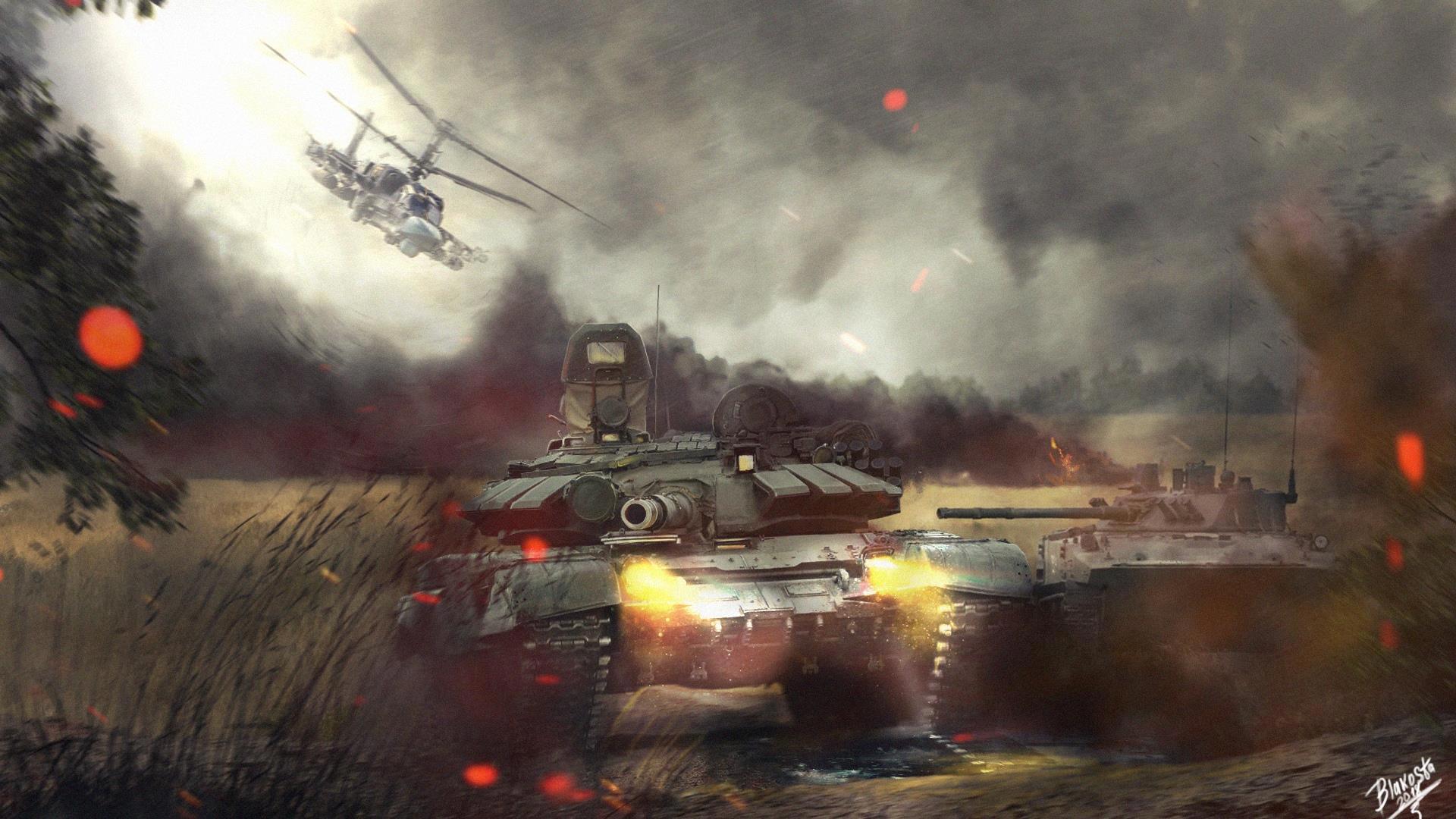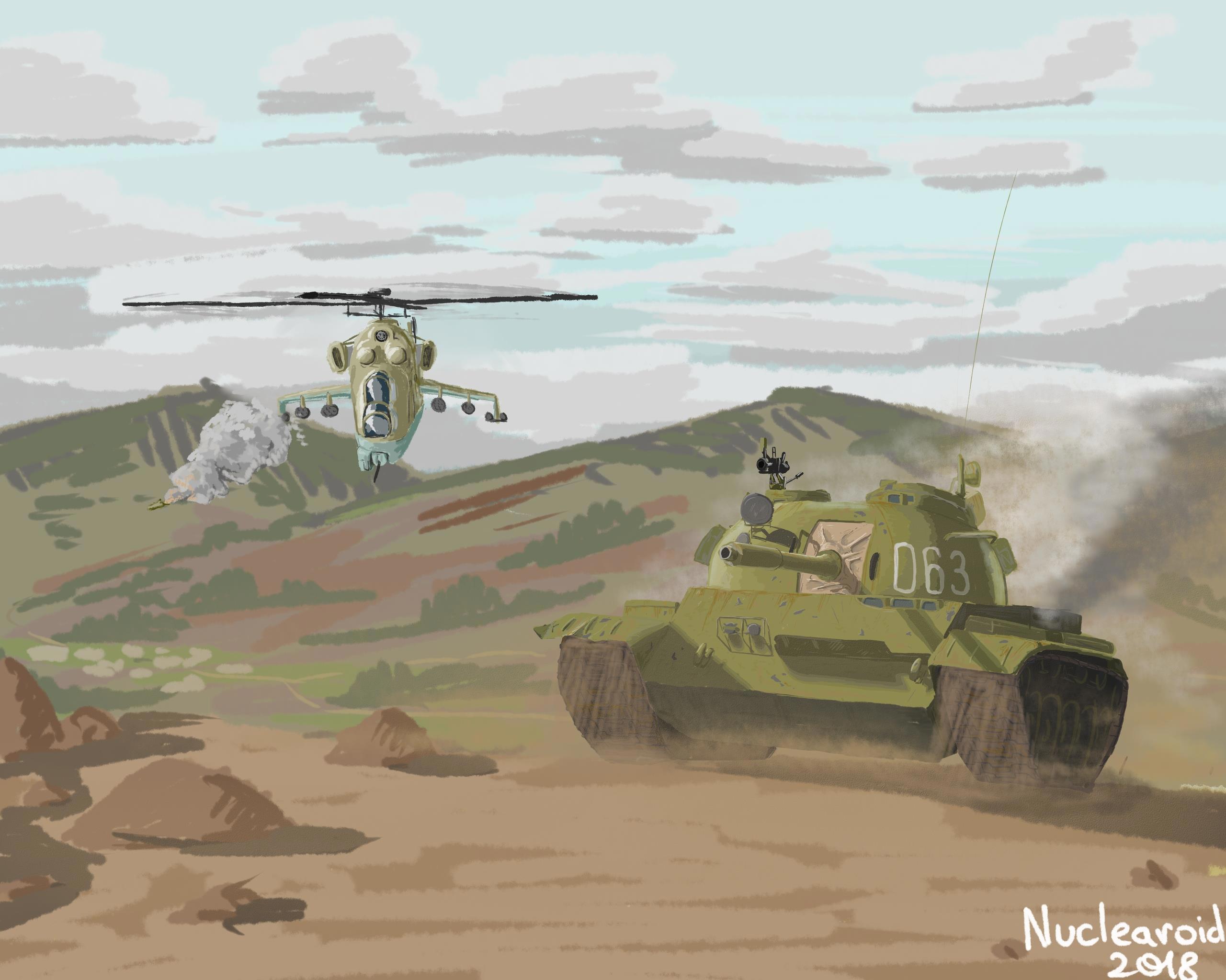 Т-55 едет на штурм высоты припроддержки ми-24 (ка-52 нету)
