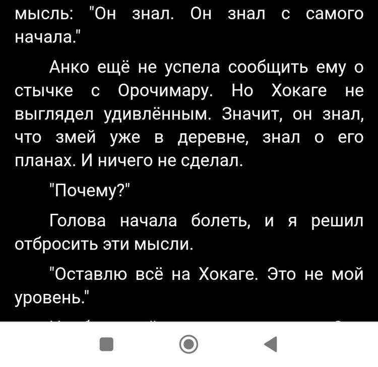 Что за тупые перерывы у Хирузена? Что за диалоги... Читаю не диалоги шиноби, а много возрастных детей каких-то. Только норм розговоры между Орочи-гг и работорговцы, я так понимаю их пишет PROSTO?