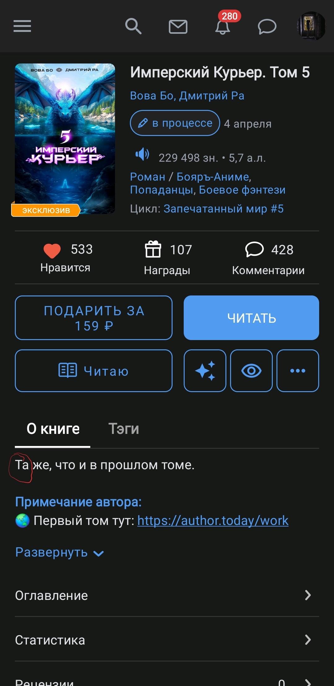 Написал комментарий к произведению Имперский Курьер. Том 7