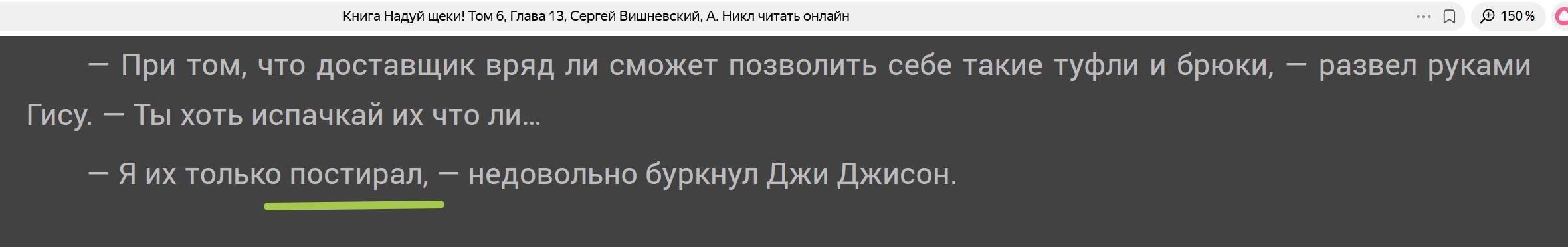 Брюки он стирал т.к. в лужу упал. Потом говорит что не умеет и не доводилось стирать.