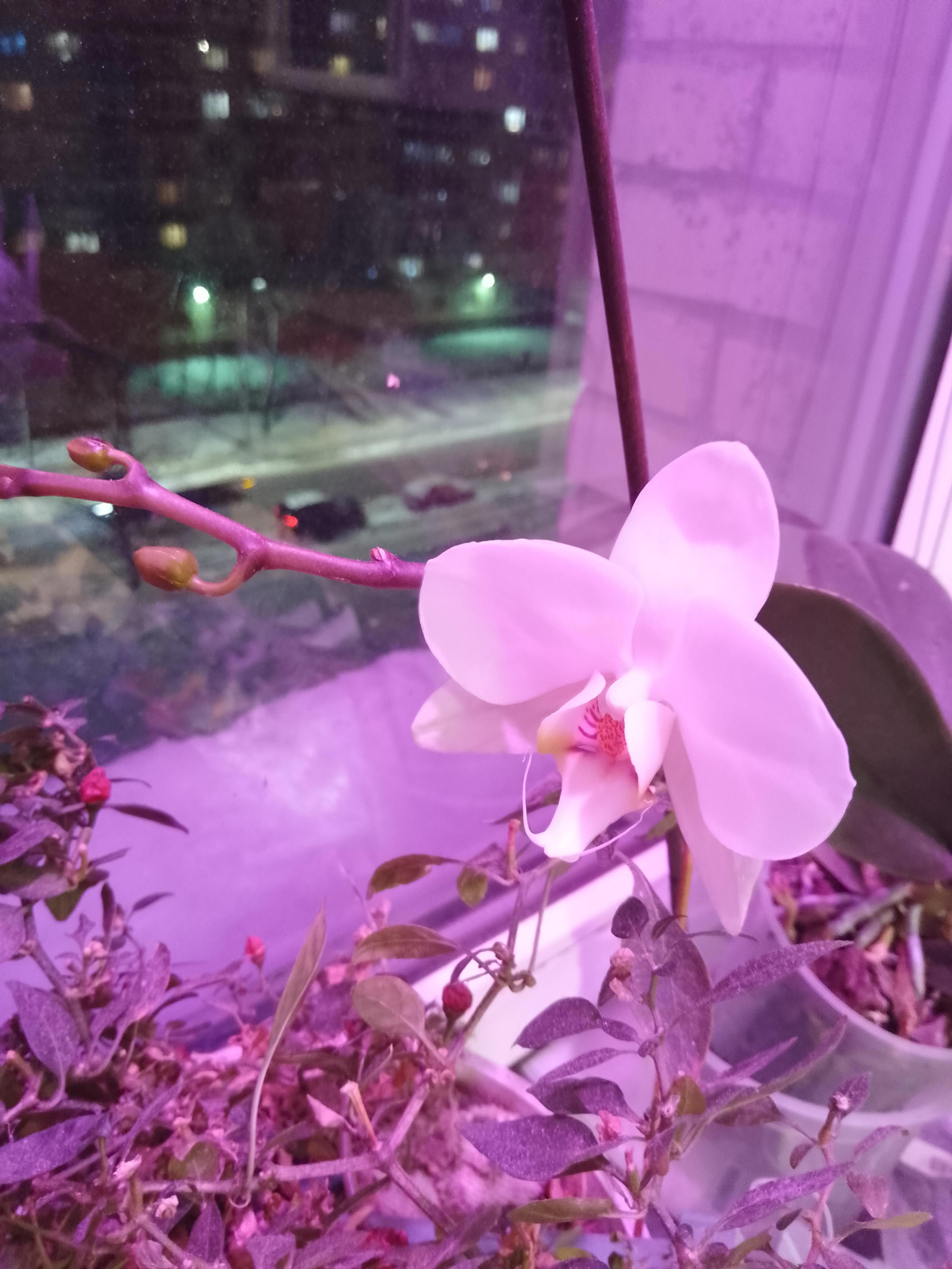 Под розовой лампой, пока ночи длинные, хоть такой свет. Вечно цветущий и плодоносящий перец жгучий, да вот Белая Радость)