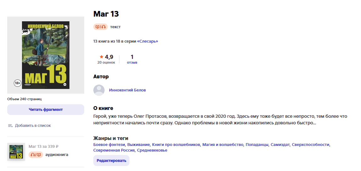 Пятую аудио книгу продают на ЛитРес. А здесь так и не было.
