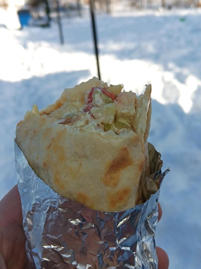 Правда в фольгу заворачиваю - так удобнее, и вместо питы тортилья - тоже удобнее, да и вкуснее получается