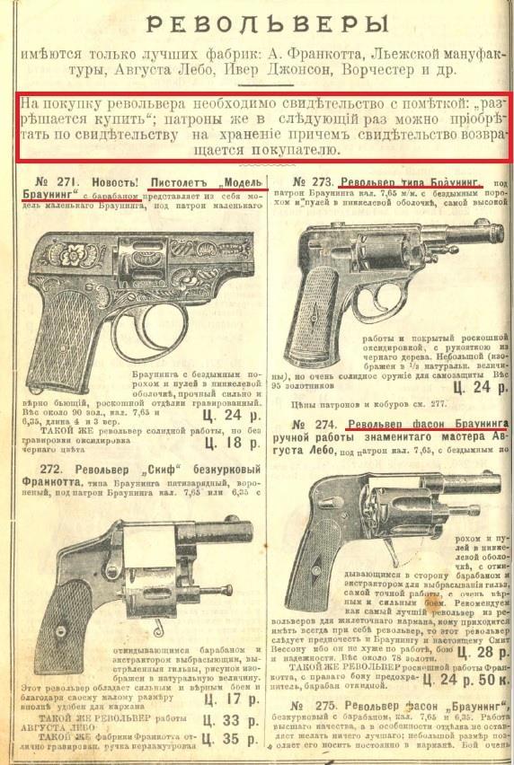 ООО! Шикарно, надо сходить."В ужасной царской России можно было покупать короткоствол свободно" - емнип с 1905 года - низзя. Только по разрешению от полиции. И патроны к нему только по разрешению на хранение.