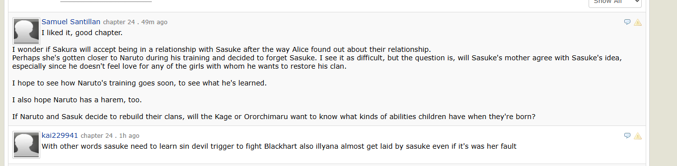 Полностью согласен, и этому есть причина, и причина эта — моя ошибка, я вот недавно понял, в чем заключалась она, а именно в попытке раскрыть всех и вся, по началу, когда я решил внедрить 100 шиноби, мне казалось, это отличная идея, нет, она отличная, но вот я не подумал о том, как это сделать, а сделать это чертовски сложно даже с соавтором. Благо на «Бусти» у меня достаточно подписчков, чтобы поддерживать интерес к фанфику и продолжать его делать (тьфу-тьфу-тьфу). Поэтому в крайних главах сюжет сосредоточен всего на двух сюжетках, на Каге и Саске, и, по нашему с соавтором мнению, выходит хорошо. Так что я прошу вас потерпеть, и качество обязательно улучшится.