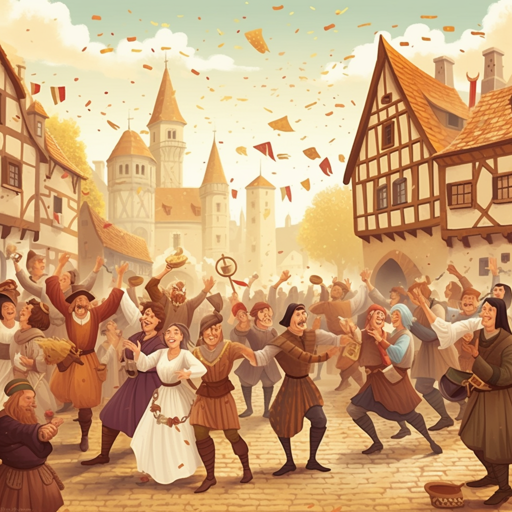 Тоже пользуюсь Midjourney, но пока он хорошо помогает только с обложками. С иллюстрациями к тексту он не очень справляется: то лица пугающие, то не совсем то, что хотелось. Вот, например, попытка сгенерировать праздник урожая: