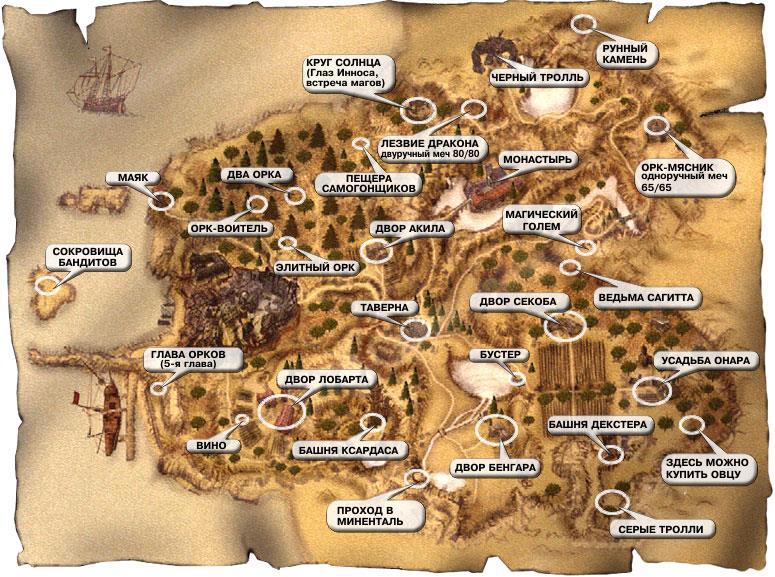 Вот если пройти от руин монастыря в доль берега на юг, а потом перелезть через горы то как раз выберемся к усадьбе (ферме) Онара там же рядом продают овцу.