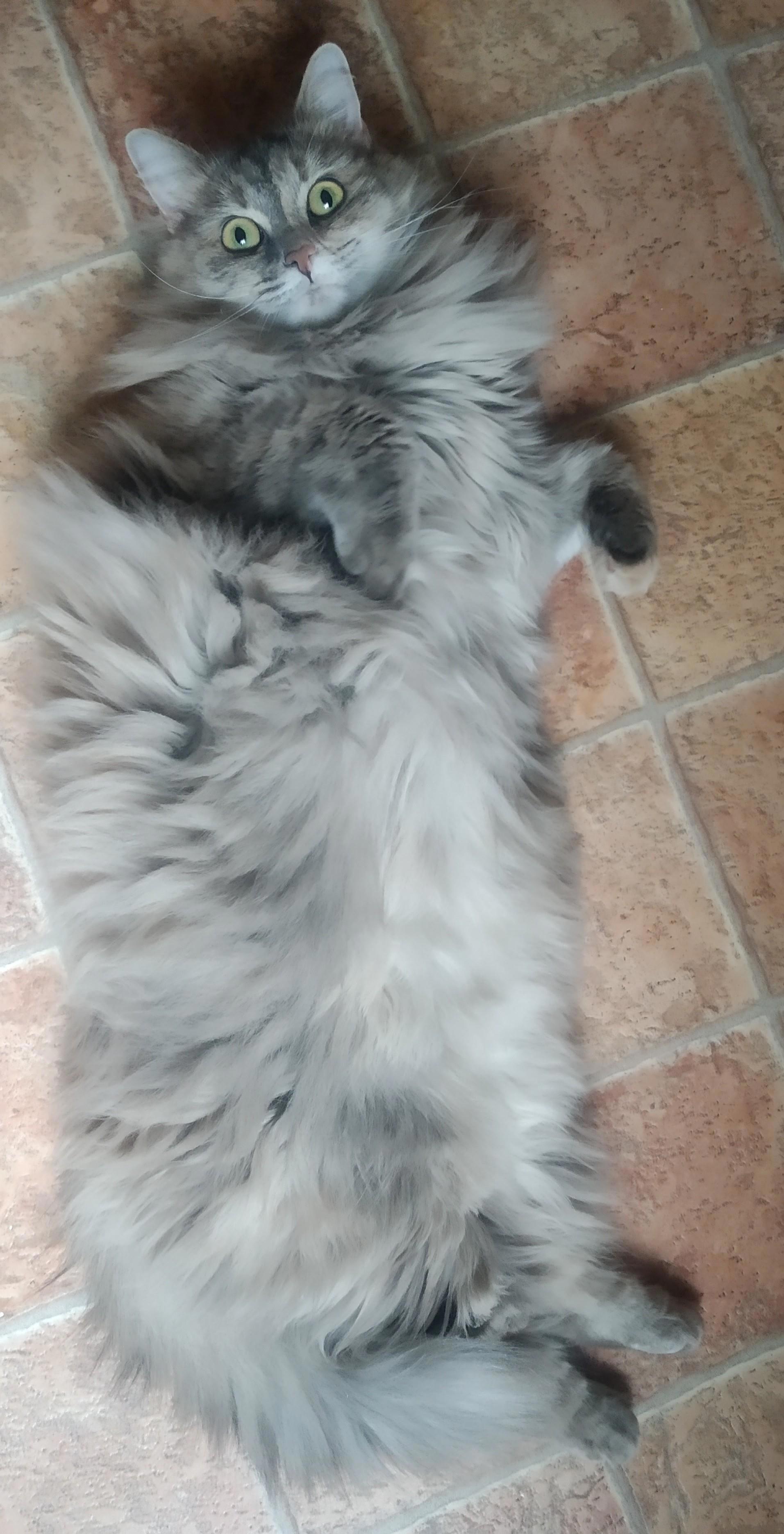 Угу, вот идешь по коридору, а она вперед забежит и плюхается вот так пузом кверху.
