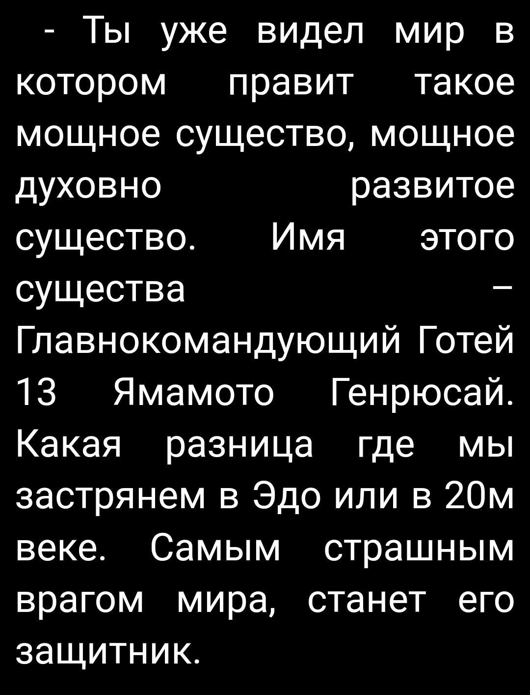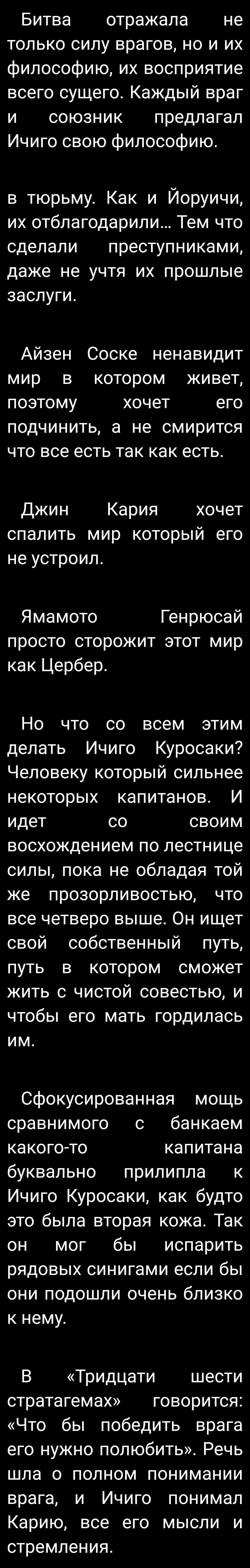 Я вот вдруг подумал... А что если гг пройдёт в своём теле через преобразователь киши в рейши? Как тот, через который прошли его друзья при переходе в сообщество душ... Мысль следующая: по-сути они пройдя данную процедуру стали душами. Но могли пользоваться своими силами, как в телах (силы квинси вообще завязаны на родословную и тело, но Урю смог ими пользоваться в СД). А гг не может пользоваться силами шинигами и пустого в теле (может ли пользоваться силами подчинения и квинси, будучи душой вопрос открытый). Но сможет ли он пользоваться всеми силами сразу пройдя такое преобразование?
