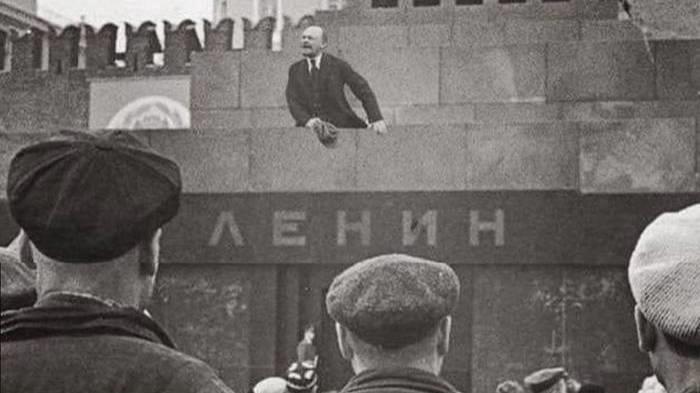 Примерно октябрь 1930 года. Как раз открытие каменного Мавзолея.