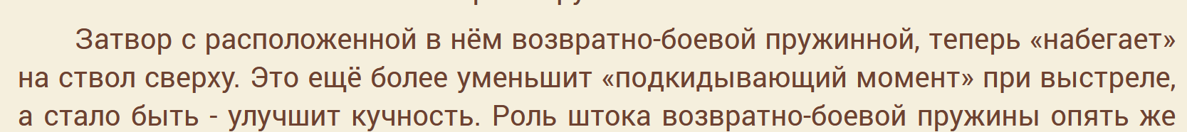 Автор -не тупи - взвод тяжелого курка, конечно подзамедляет затвор , но все упирается в свержесткую пружину и массу затвора и относительно длинный ход. Вы правильно привели массу затвора кило+ для промежуточного патрона.